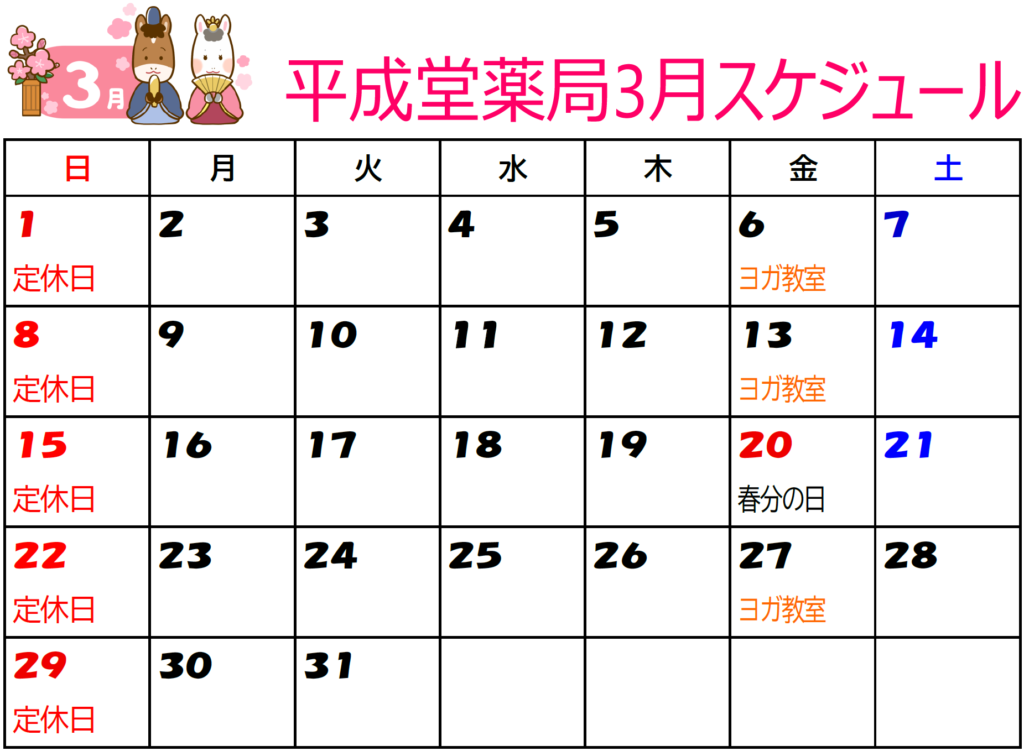 3月スケジュール 青森の漢方薬局 平成堂薬局